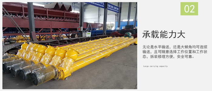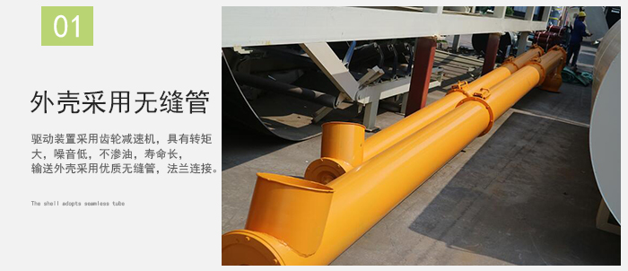 驱动装置采用齿轮减速机,具有转矩大,噪音低,不渗油,寿命长,输送外壳采用优质无缝管,法兰连接。整体刚性好,承载能力大,在输送时,无论是水平输送,还是大倾角均可连续输送,且可随意选择工作位置和工作状态,拆装修理方便,安全可靠。