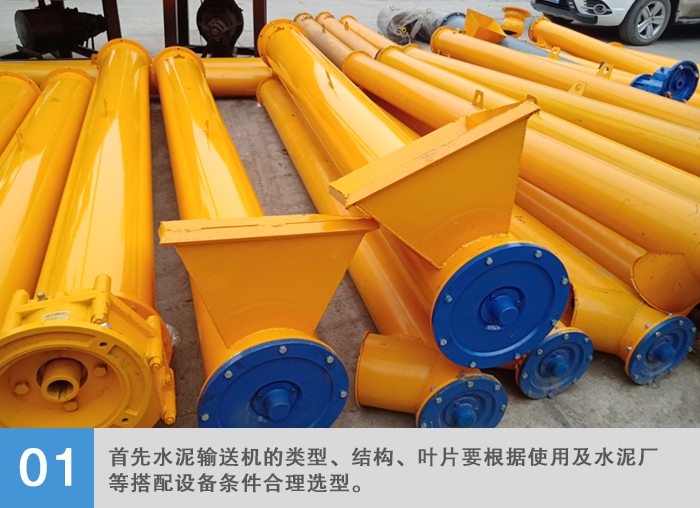 首先水泥输送机的类型、结构、叶片要根据使用及水泥厂等搭配设备条件合理选型。